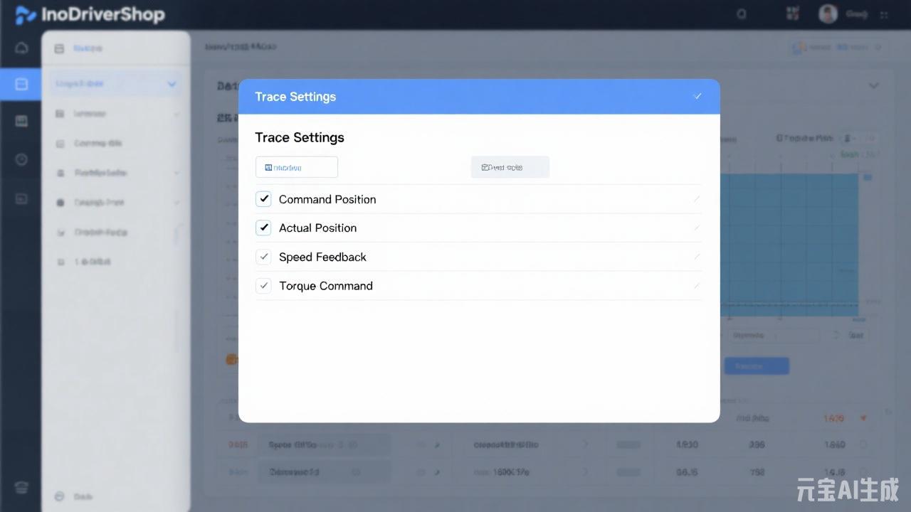 现代伺服驱动器普遍内置了数据记录或跟踪功能,可以像示波器一样捕获关键运行数据。我们以调试一个存在停止时振动的旋转工作台为例。